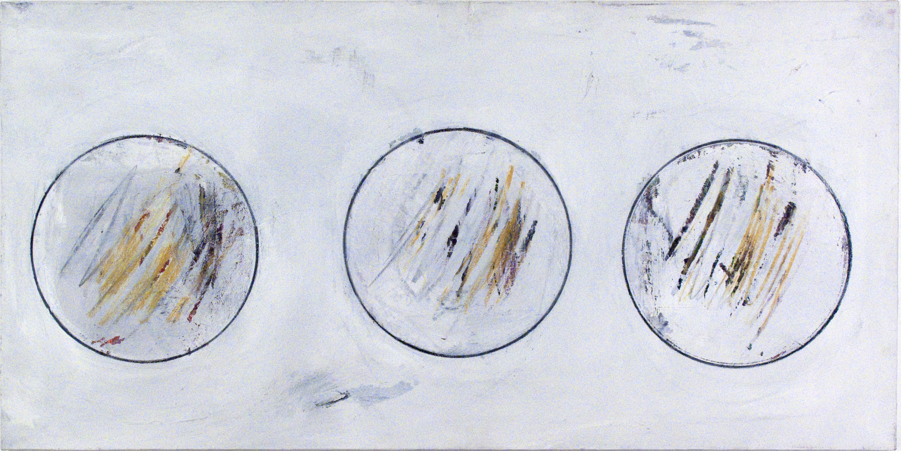 3 rounds, 2007, 24" x 48", Acrylic & mixed media on canvas